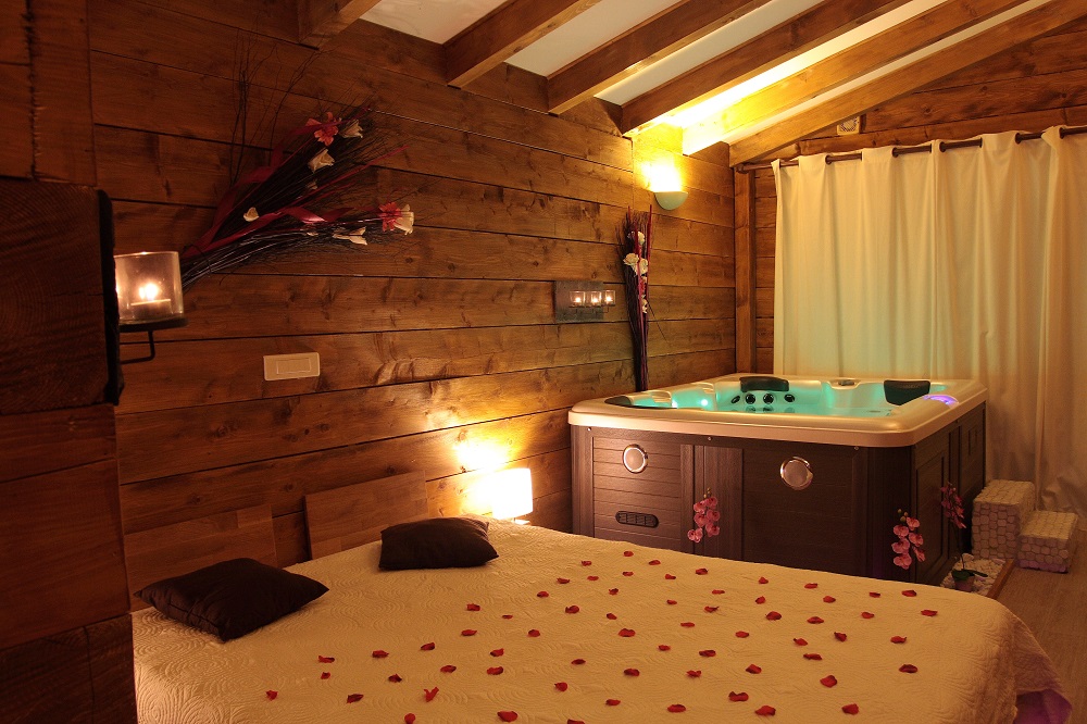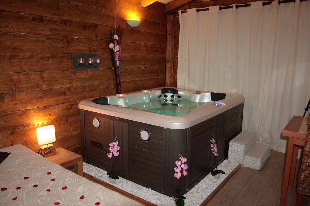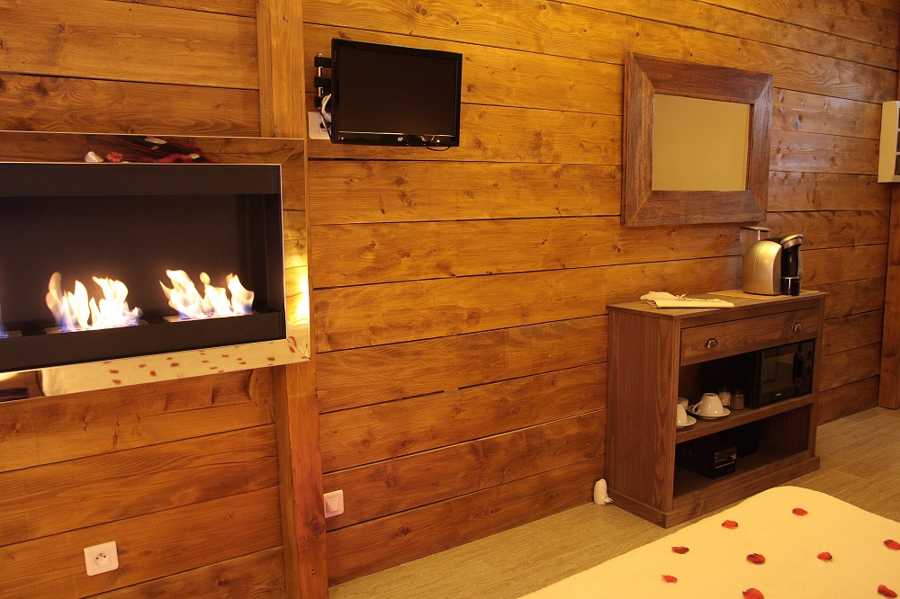 Dans cette suite climatisée avec spa et cheminé bio éthanol avec un accès indépendant, et une terasse extèrieure avec table et chaises, ainsi que son parking privatif sécurisé